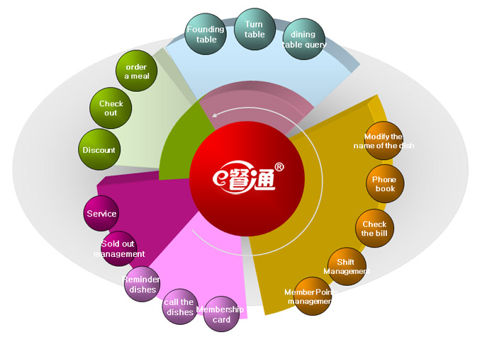 Via WIFI wireless transmission, Y-menu, with multi functions , can not only help guests with self-ordering, service call, a key to place order and courses change, but also make advertisements and promotions, intellectual and nutrition analysis, as well as internet booking, member management and customer evaluation, all of which can lower the operating expense. Currently, the Y-menu is perfectly compatible with the existing IT system, thus making the whole information run fast and accurately and digitizing the whole system.