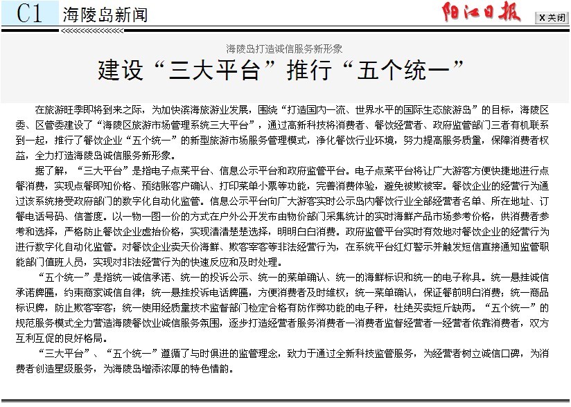 2013年初夏,Ymenu合作阳江海陵岛,Ymenu三大平台 助力打造阳江海陵区和谐舒适的旅游环境!