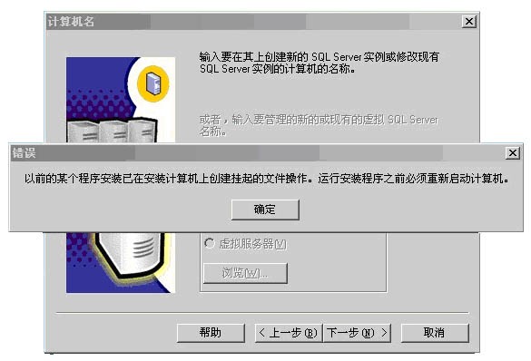 三、安装SQL Server 2000出现如下错误信息:安装文件配置服务器失败