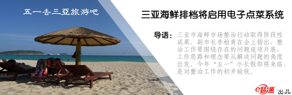 五一期间三亚部分海鲜排挡将启用电子点菜系统。人民网记者4月11日从三亚市海鲜市场整治行动工作联席会上获悉,今年“五一”期间,三亚市部分海鲜商家将启用电子点菜系统,让广大消费者在就餐时明明白白地消费。三亚市政府有关部门要求创新思路解决新问题,争取在“五一”期间实现部分商家启用电子点菜系统。各部门要结合整治工作进展情况随时向有关媒体通报,出现的一些欺客、宰客典型案例要及时在媒体上曝光,接受社会各界的监督,力争整治工作取得阶段性成效,今年“五一”小长假即将来临,是对整治工作的初步验收。[详细]